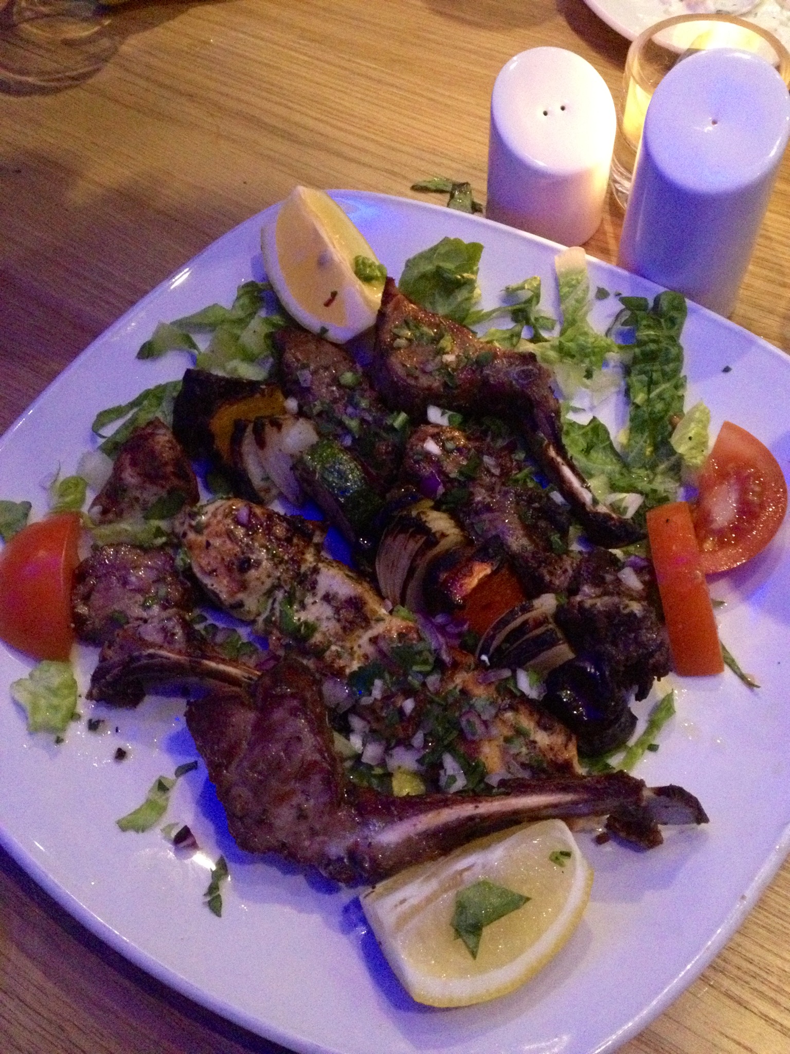 Hot starters included Spanakopitta (£4.25): a filo pastry dish filled with spinach and feta cheese, this was delicious. Garlic Mushrooms were tasty and a mixed grill which included chicken kebabs, lamb chops and grilled vegetables, pork is also included but we opted this out and had extra chicken and lamb pieces instead. Unfortunately although it was presented well the grill dish wasn’t that great, the lamb was very chewy, I prefer my lamb to be soft and tender.