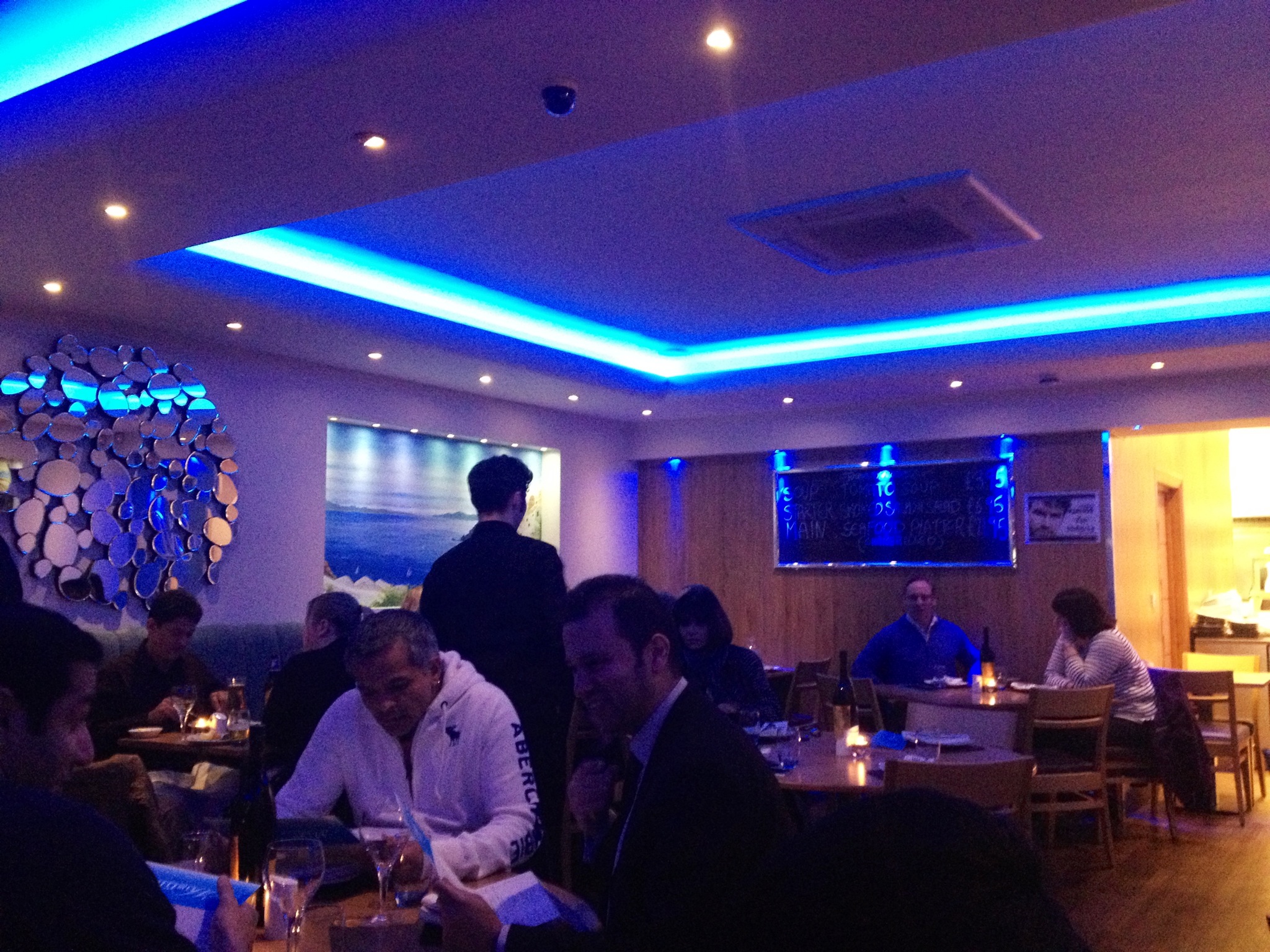 Girly gossip, vino and a local restaurant made a great Friday night at the Mosfilo Greek restaurant in Hatch End. Arriving slightly late to the restaurant, we were seated to our table where some of the girls had already arrived. I had a quick browse around at the restaurant décor, it is elegant, the lighting is blue, the mirrors and paintings on the wall are lovely.