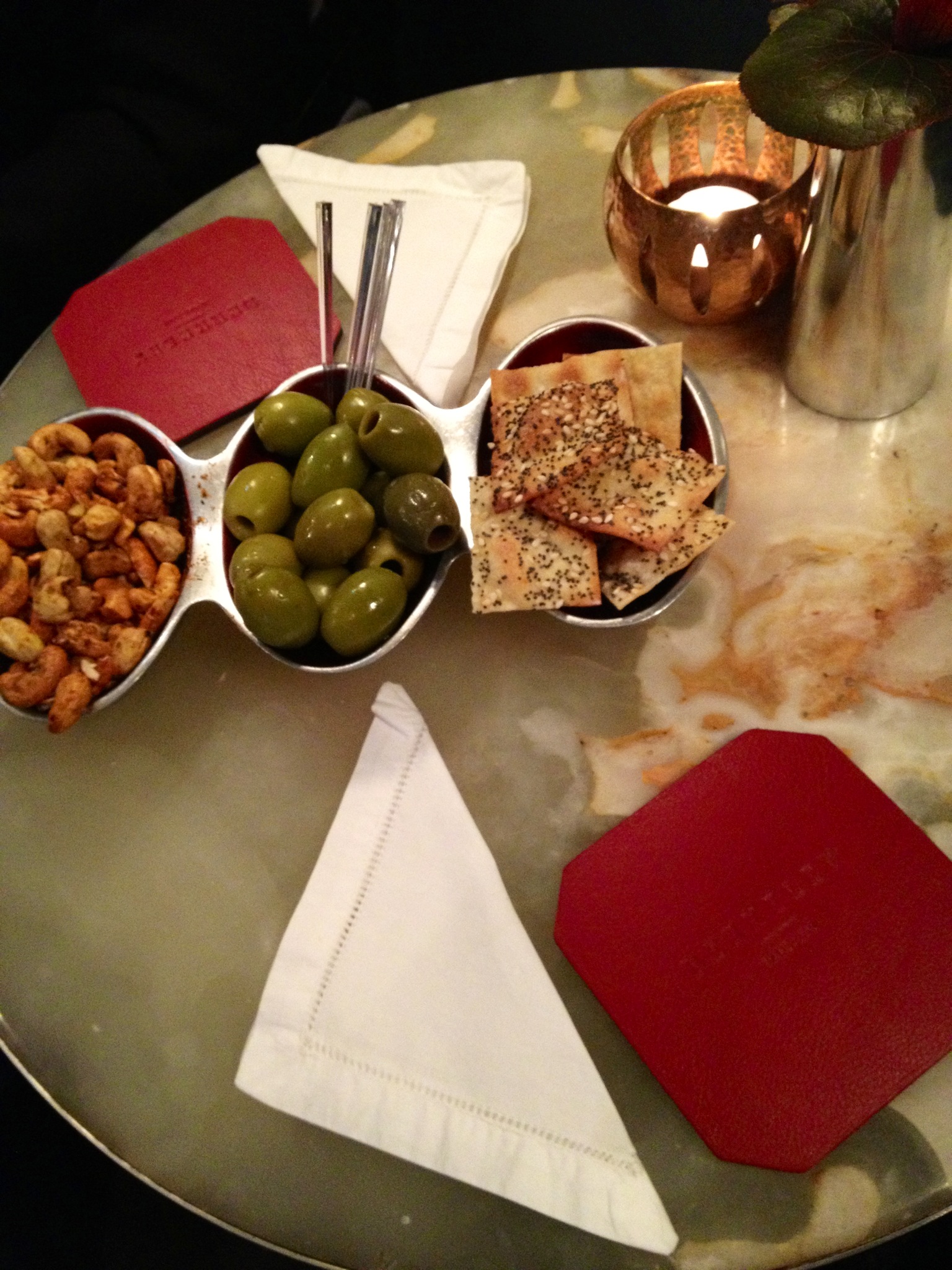 At the Blue Bar we were led to our table and were given snacks of olives, nuts, these square crispy bites and a drinks menu where we ordered ginger beer. It’s a small chilled out bar, the staff were lovely and efficient. I loved the décor, but be warned the drinks prices are expensive…