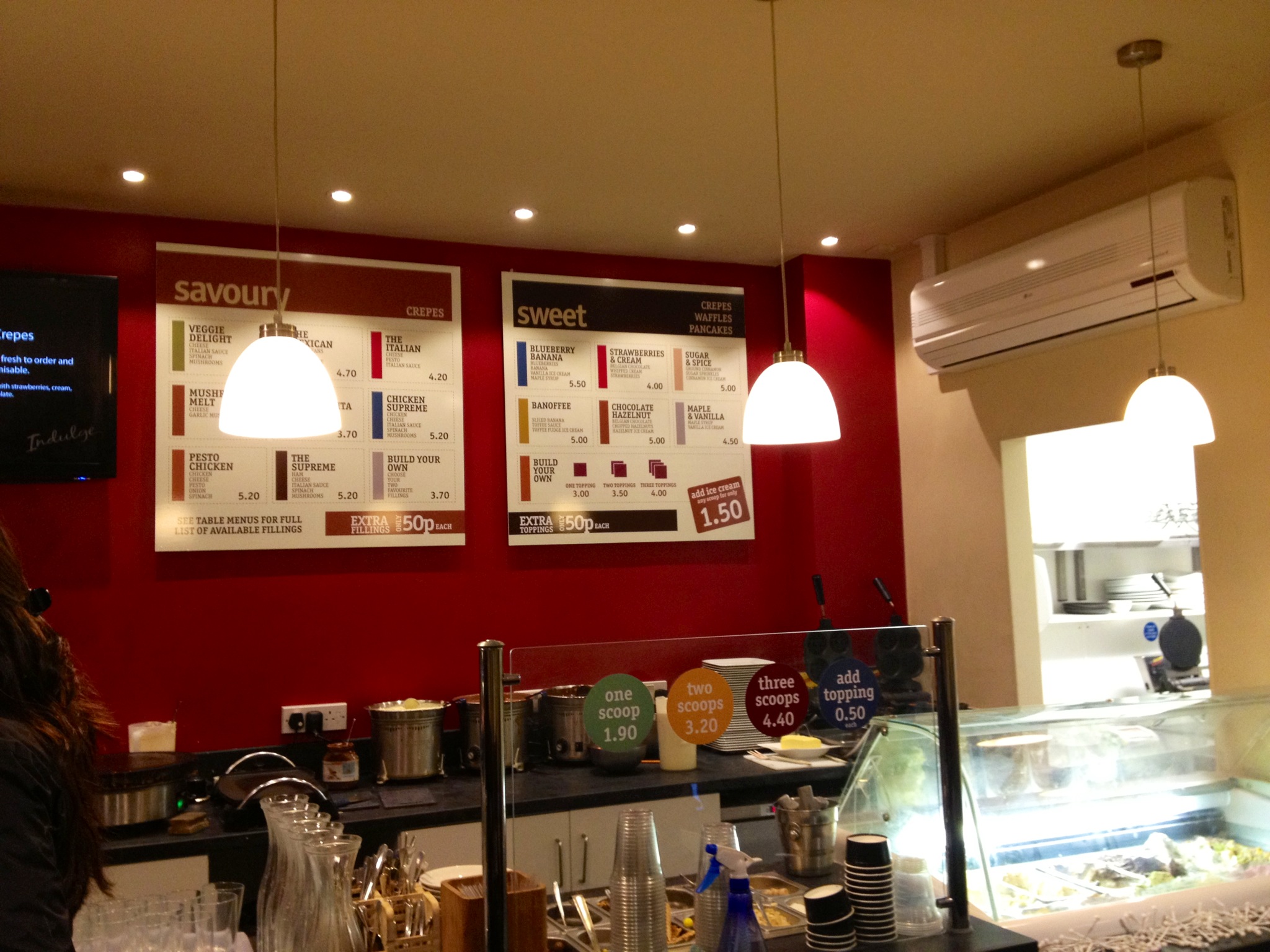 Before entering Indulge Dessert Lounge you are greeted with a steamy window (no nothing dodgy), the dessert bar is small and gets very packed with the kitchen fumes adding to the steaminess. It’s advisable to book a table in advance; otherwise you’ll be given an estimated wait time. We waited just 5 minutes for our table of 4.
