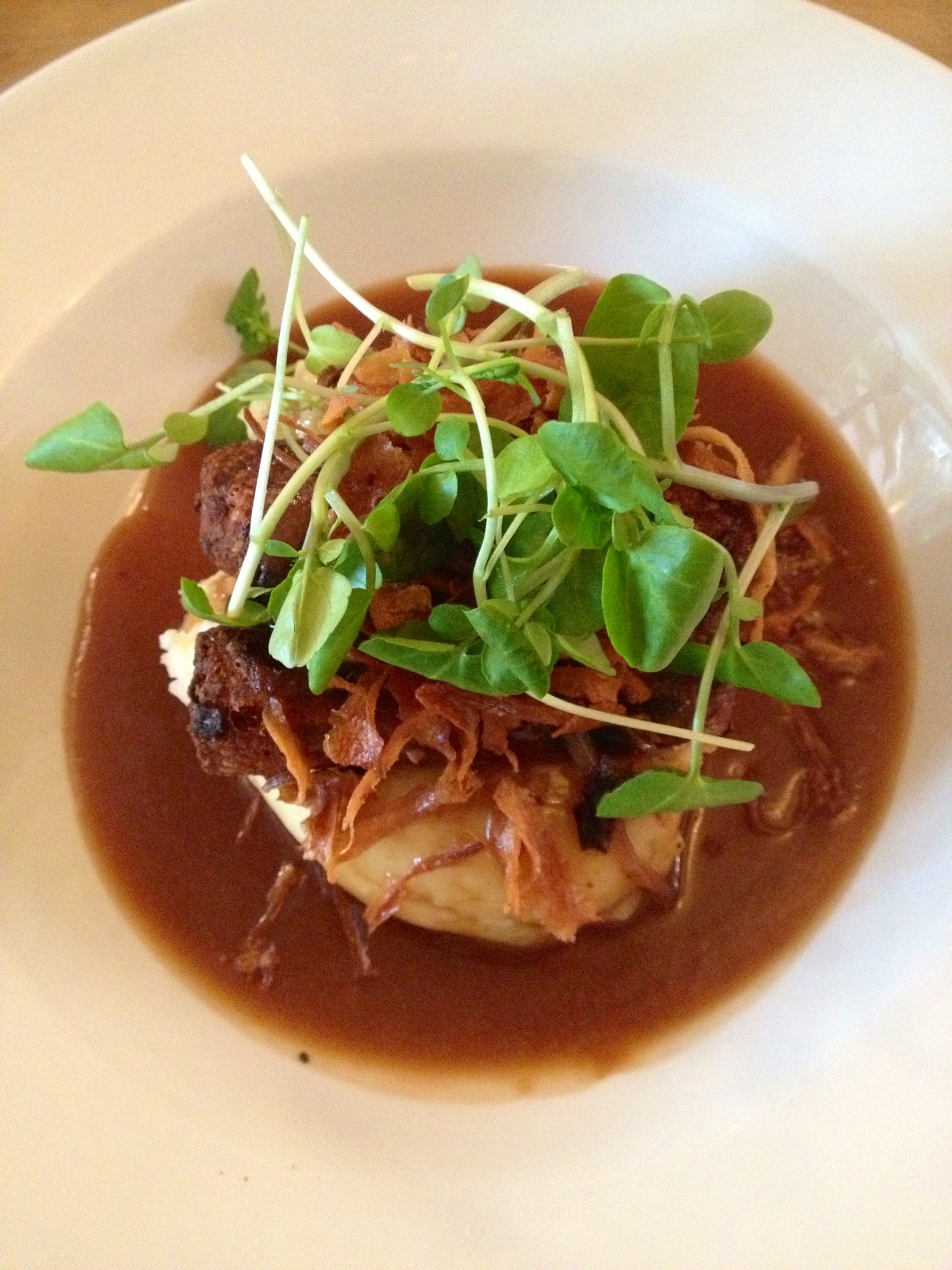 And I opted for the Vegetarian Sausage and Mash served with buttered mash potato, onion gravy and Root Crisps (£8.95). This was scrumptious; the mashed potatoes were lovely and buttery and melted in my mouth. The onion gravy was rich with a lovely texture and flavour and complimented the sausages and mash: