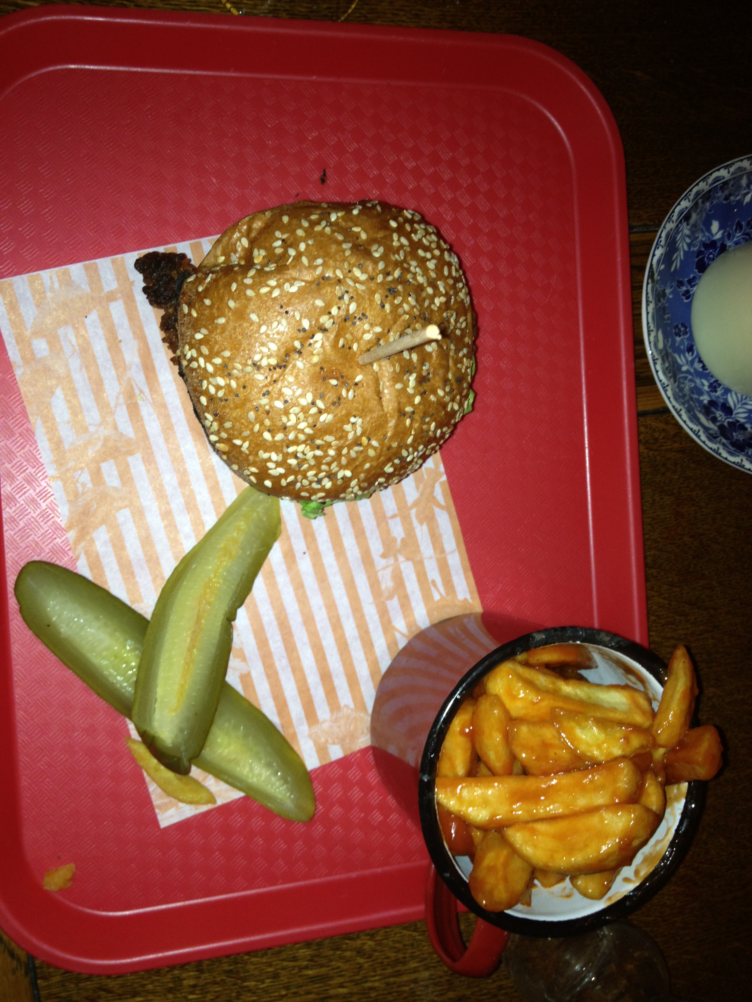 And from the burger section: Maryland Buttermilk Chicken Burger with pickled gherkin( £9.95) and a Butter-bean Burger with smoked cheddar cheese and a tomato chutney (£8.95) with a side of Cowboy Fries in honey, chilli and garlic (£4.25).