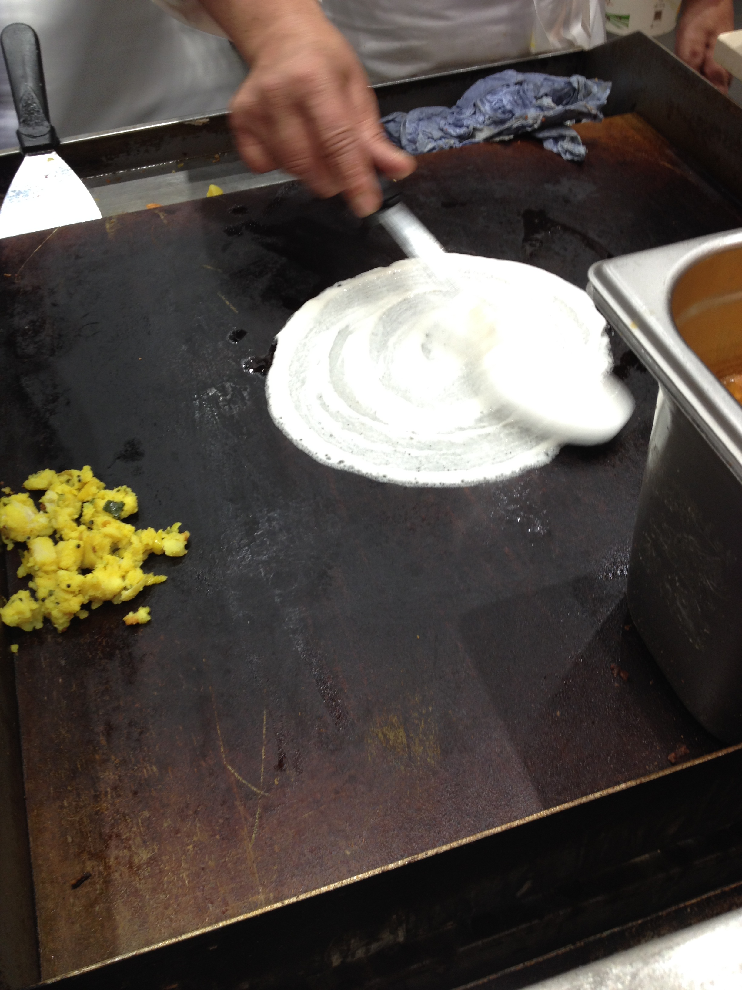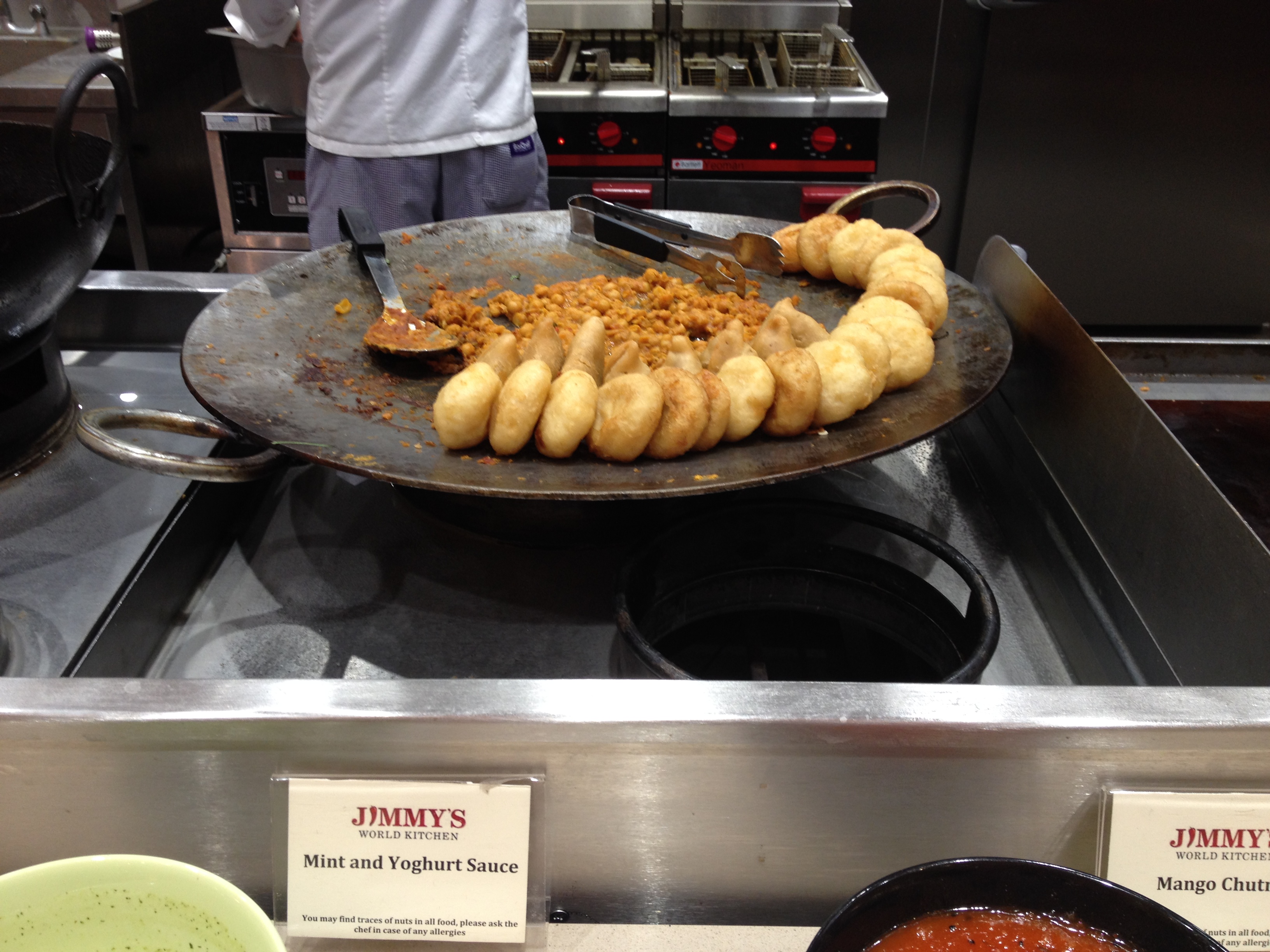 One of the best things about Jimmy’s World is the live cooking stations; this is where you can watch chefs prepare the different types of food. Although the concept is great, you are spoilt for choice, first of, I opted for my favourite dish from South India called ‘Masala Dosa’, an Indian savoury pancake filled with a spicy potato filling, served with warm dhal and coconut chutney.