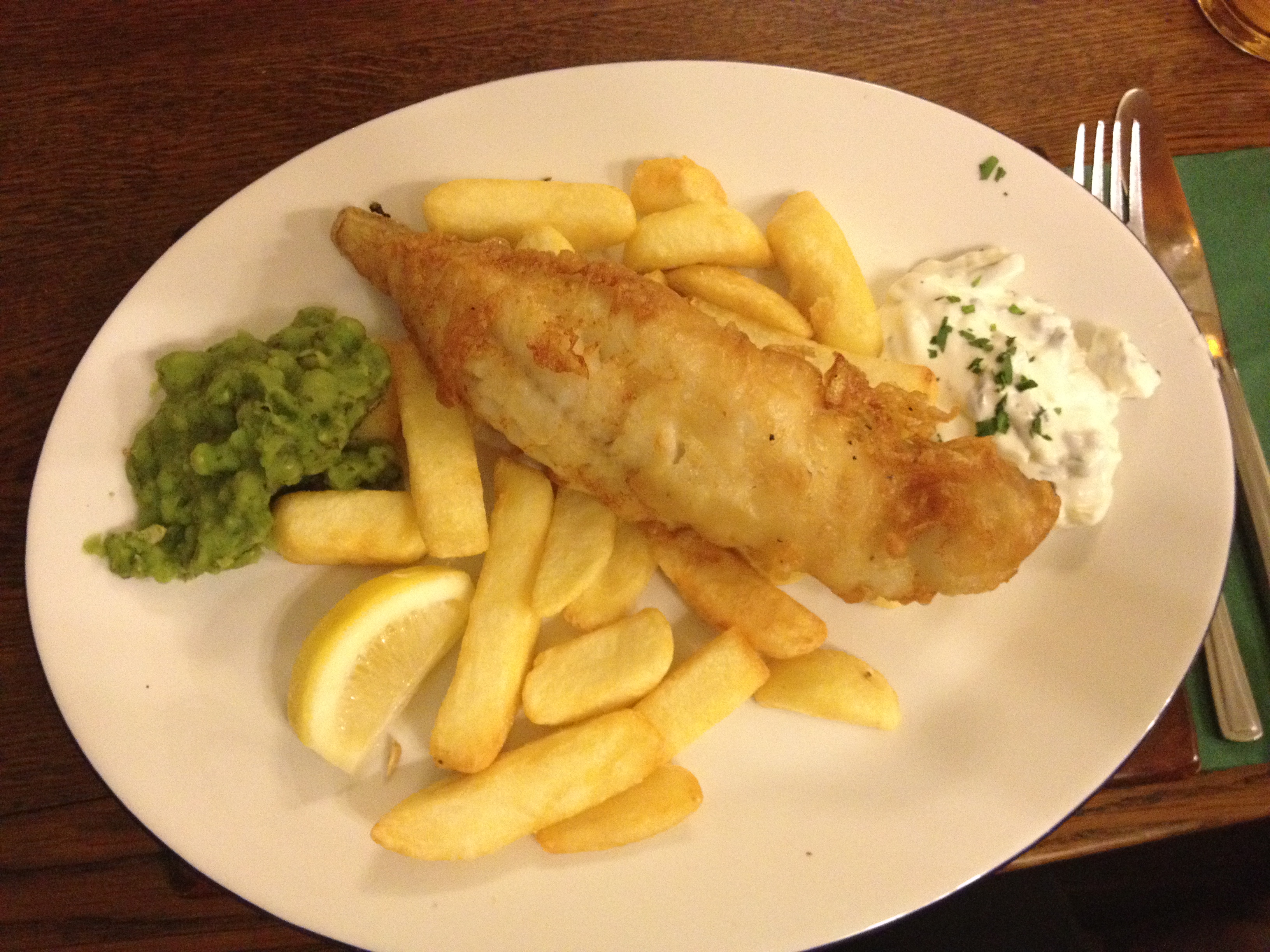 We both decided on the Deep-fried Haddock in a beer batter served with chips, mushy peas and tartar sauce (£12.75). The presentation was great and the food was a-mazing! The haddock was fresh and very tasty.