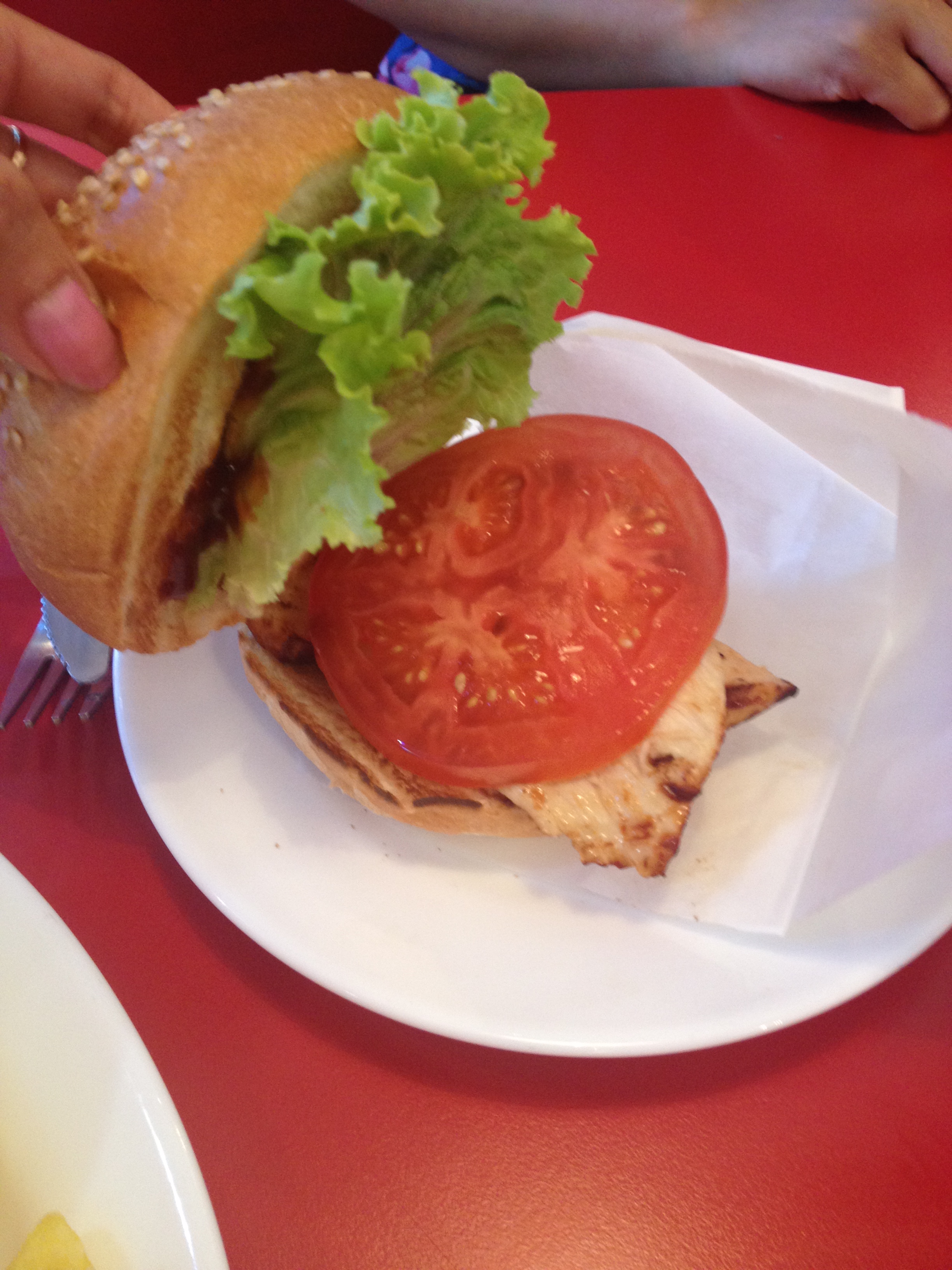 The menu at Es’s Easy Diner is good it has a range of burgers, including vegetarian options, milkshakes, a variety of sides and a kids menu. After deliberating my sister selected the Chicken Classic Burger with lettuce, mayonnaise, tomato and BBQ sauce £6.45, and an Ice-Cream Coke float (£3.30)