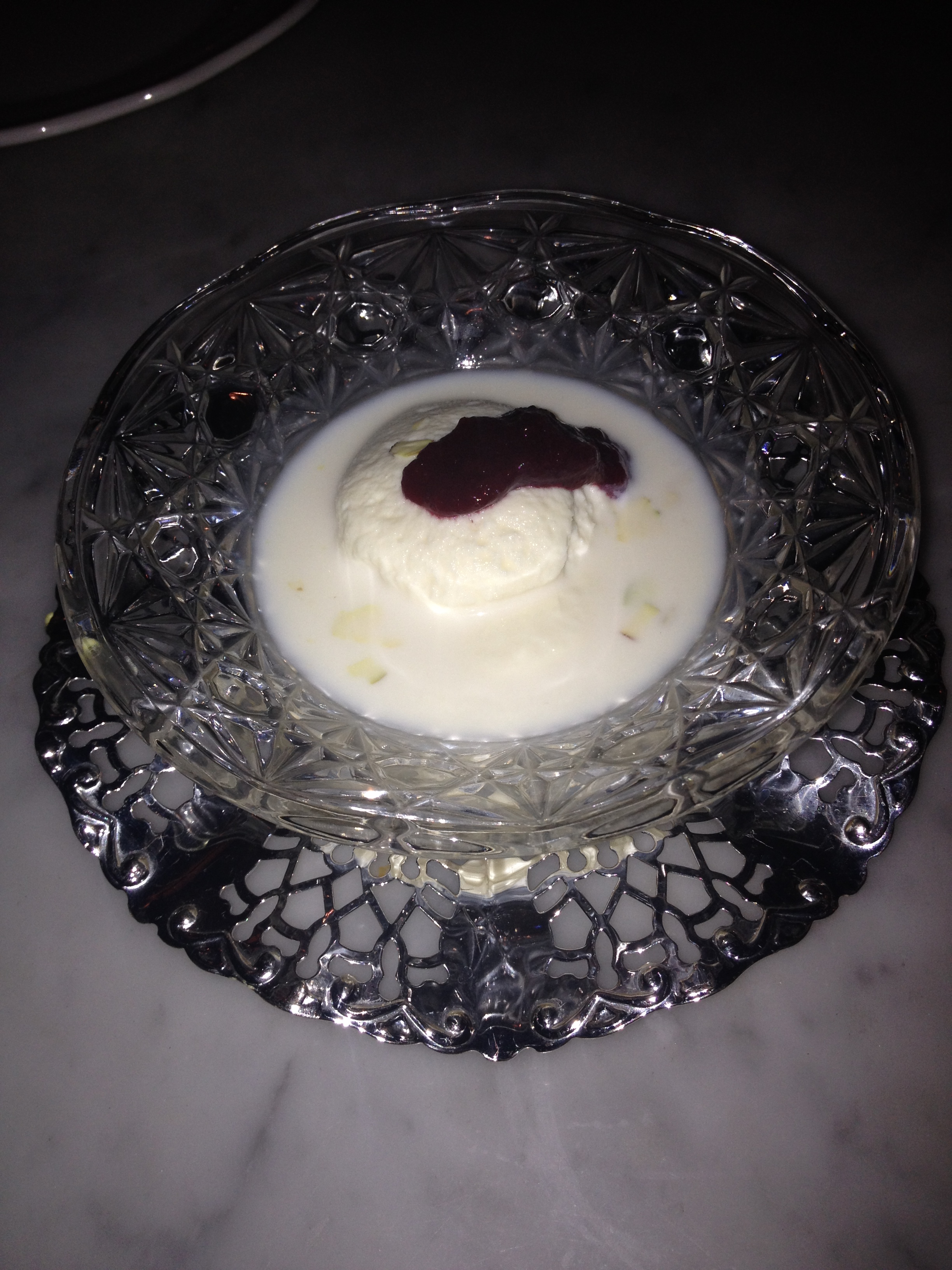 From the desert menu: ‘Ras Malai’ served with damson chutney (£7.00) and a ‘Rose Kulfi Falooda’ was selected (£8.00), whilst my fiancé opted for some chai, but before the arrival of the desserts the waitress brought out a small dark chocolate mousse with ‘happy birthday’ decorated with a chocolate sauce and a candle for my fiance, which was a lovely gesture.